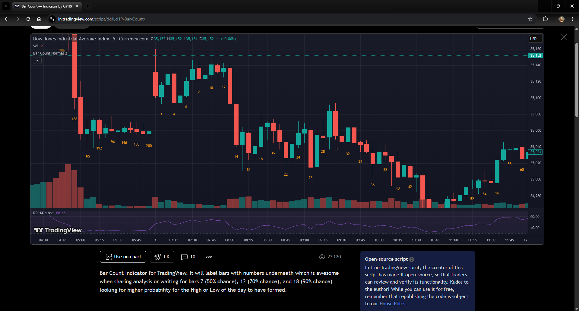 I am unable to post the TradingView URL of the āBar Countā Indicator, as madefortrade portal restricts new users from posting the URLs.