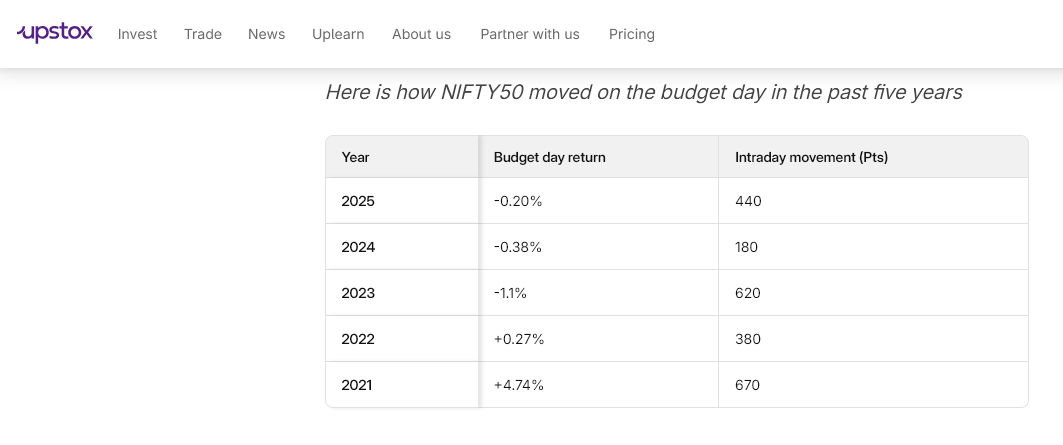 - NIFTY50 closed lower in 3 of the last 5 Budget Days