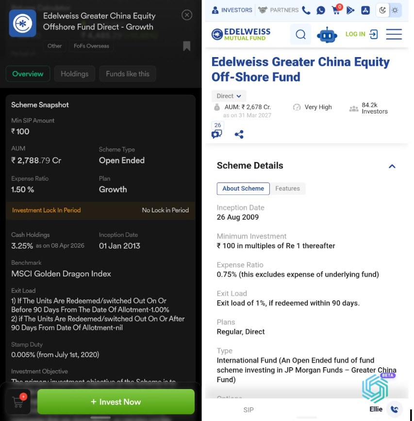 Data Accuracy (NAV vs. Displayed Returns): I have noticed discrepancies between the returns displayed on the app screen and the actual NAV performance. For example, in the Nippon India Taiwan Equity Fund, the figures do not seem to align. Consistent and accurate data is critical for maintaining investor trust.