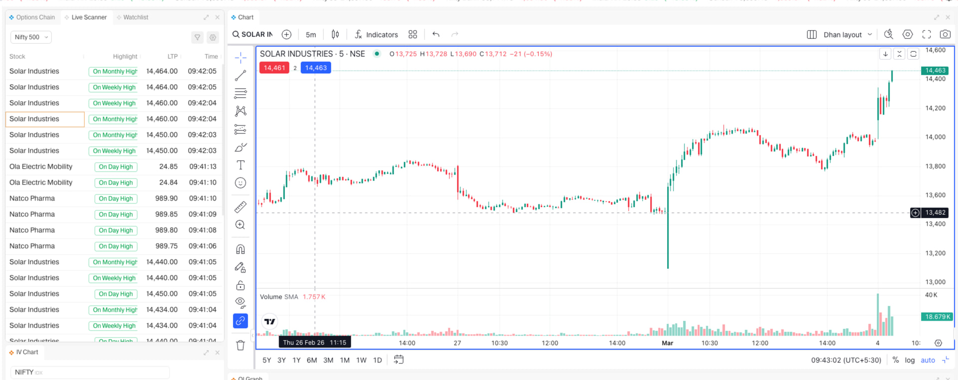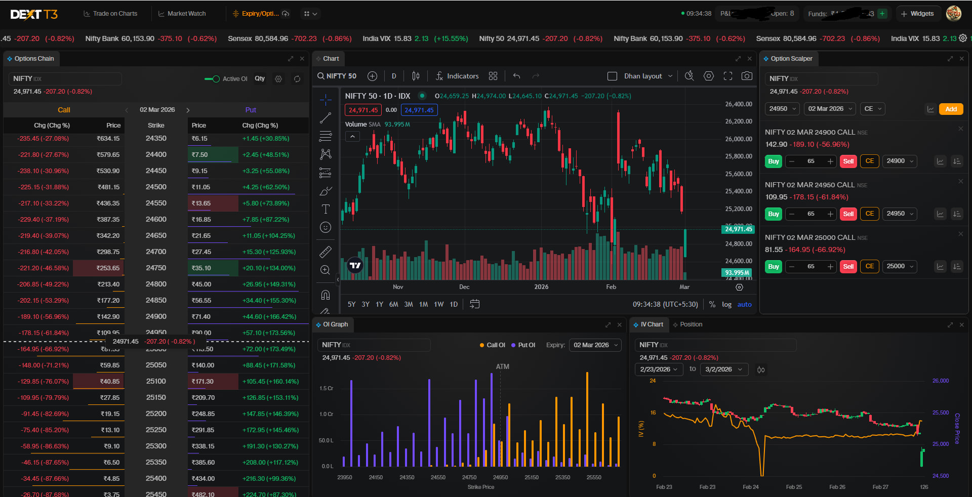- Important - Market Watch - when searching to add (for eg. Nifty 10 March Options), the Date is not visible on the Market Watch. It just shows NIFTY-Mar2026-25000-CE. We have to add it to Market Watch then open every single Option in a chart to check with the correct weekly is added.