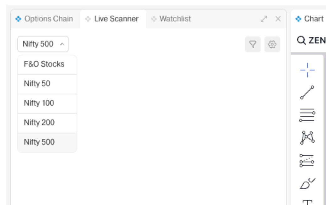- Live scanner result doesn’t show more than 30-40 entries. It should show all the result which gave me indication that it hit the day high or week high or anything. You can implement it on local computer if space or memory is the issue.