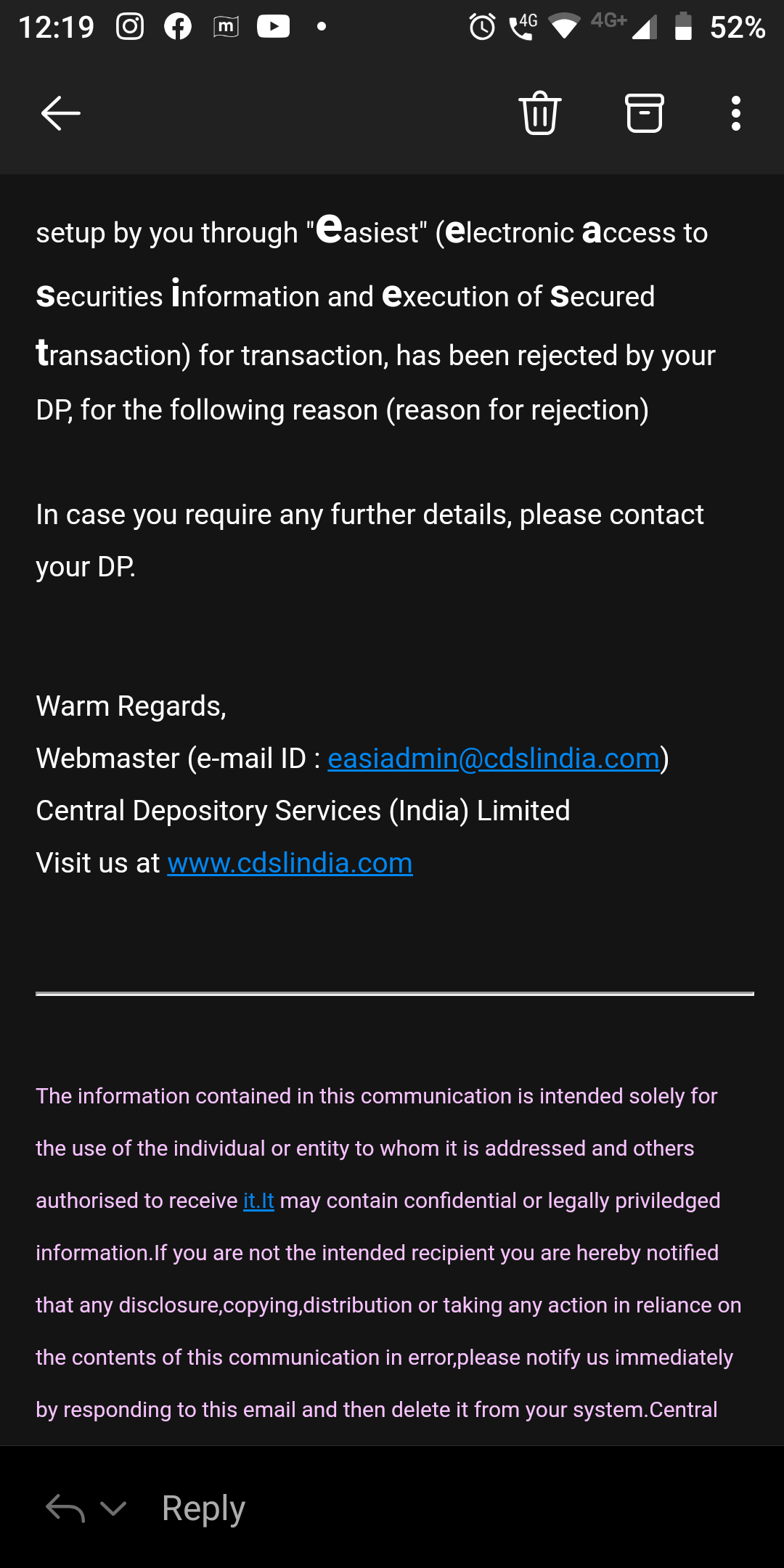 I initiated easiest transaction to transfer shares DHAN reject that transaction and when i asked they told me to deposit fund in your account to process share transfer