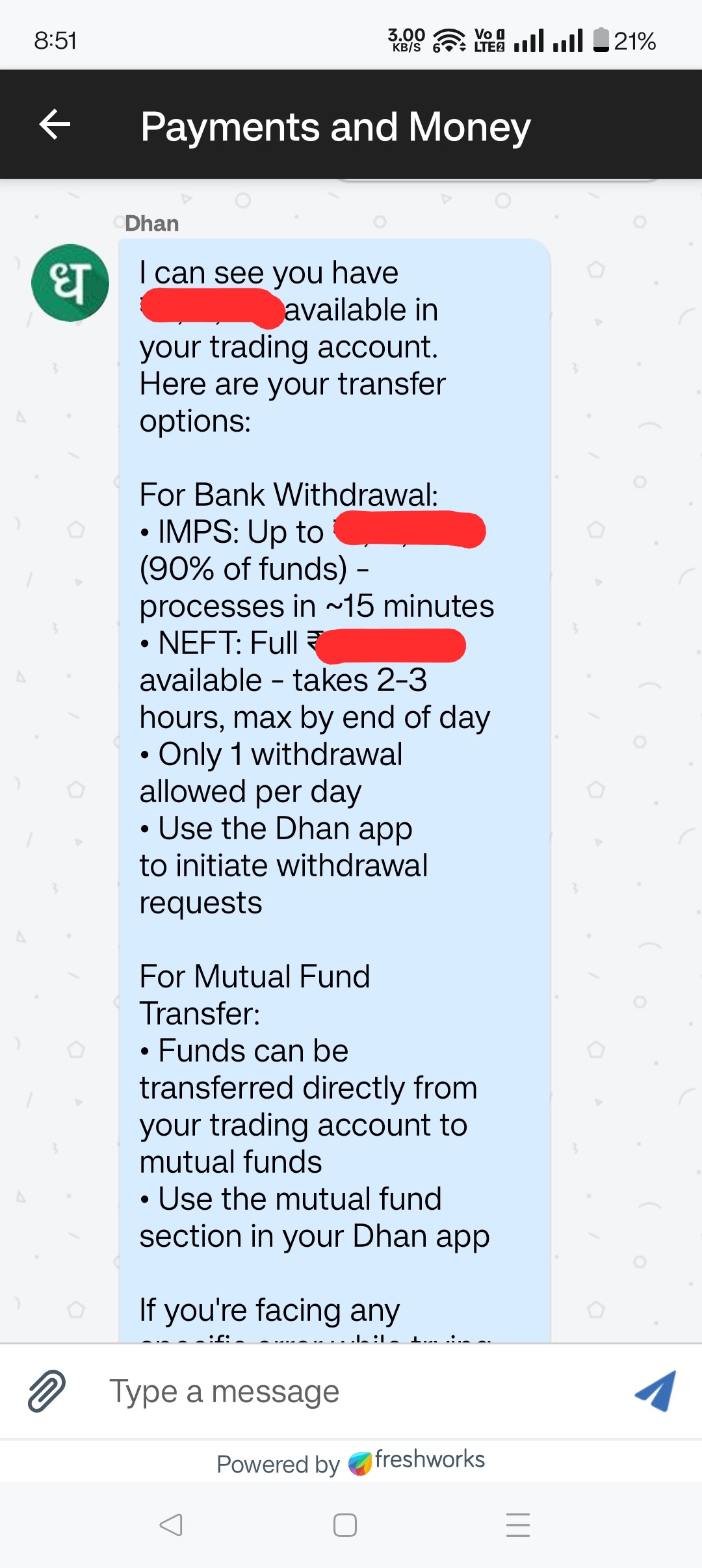 Hi @Sammy, thank you bringing this to our notice! Raise AI team is looking into this! This was caused because we missed an edge-case where the assistant couldn’t differentiate between trading account and bank account. We’ll fix this asap!