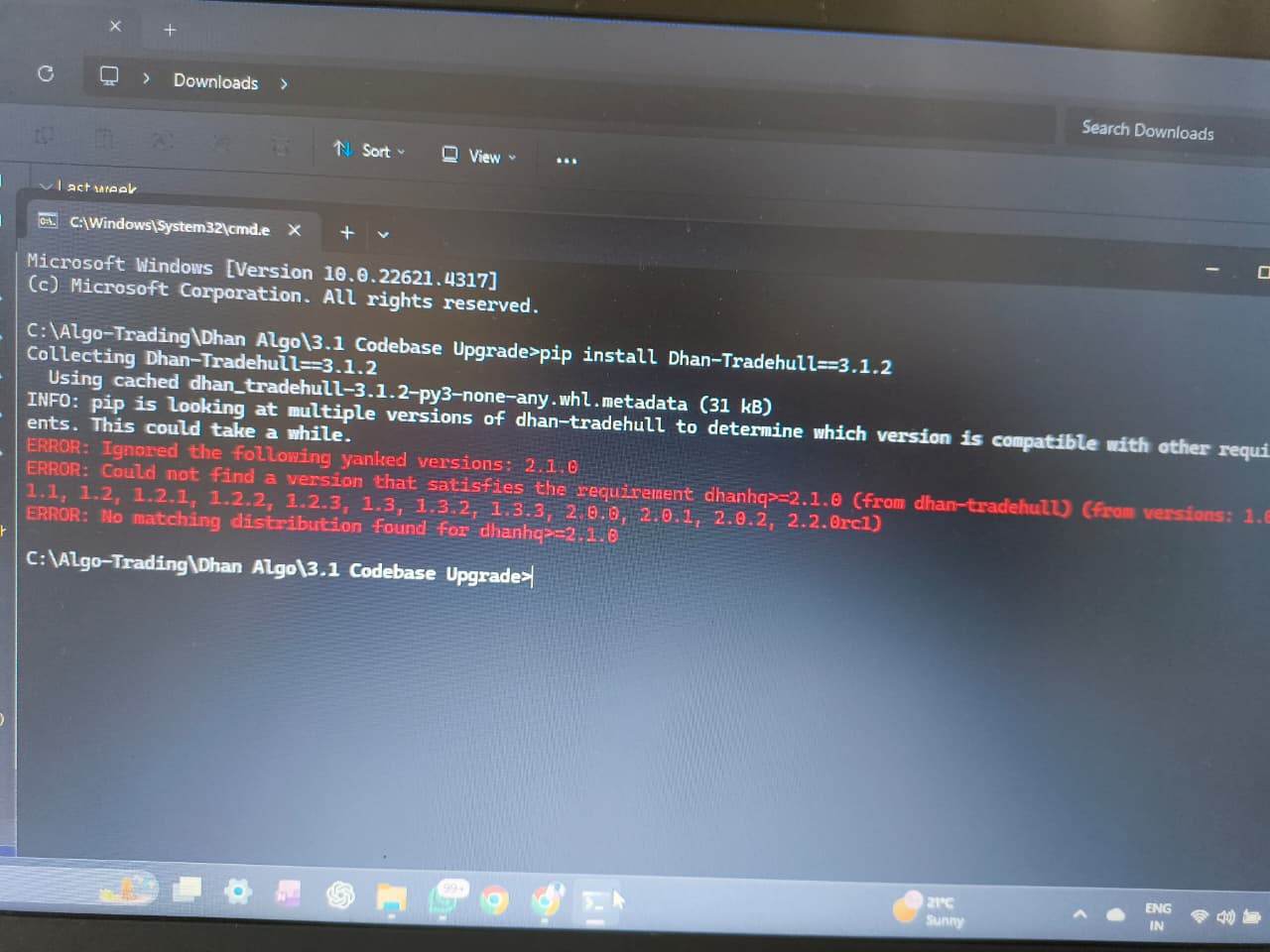 Install Dhanhq 2.1.0