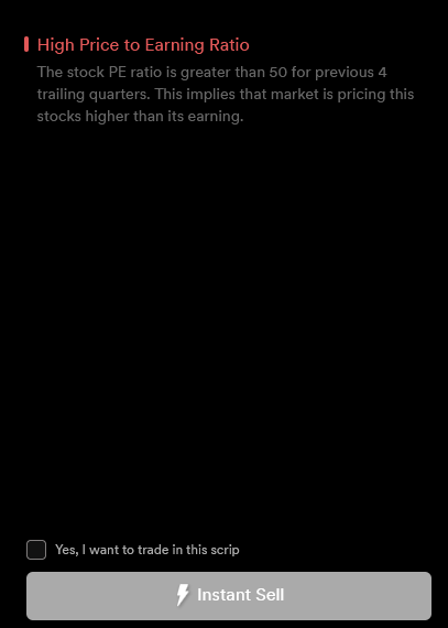 Please try to disable this AFTER I HIT INSTANT SELL, or show before I hit sell. I need to be able to offload the position fast, or maybe show a button instead of a checkbox.