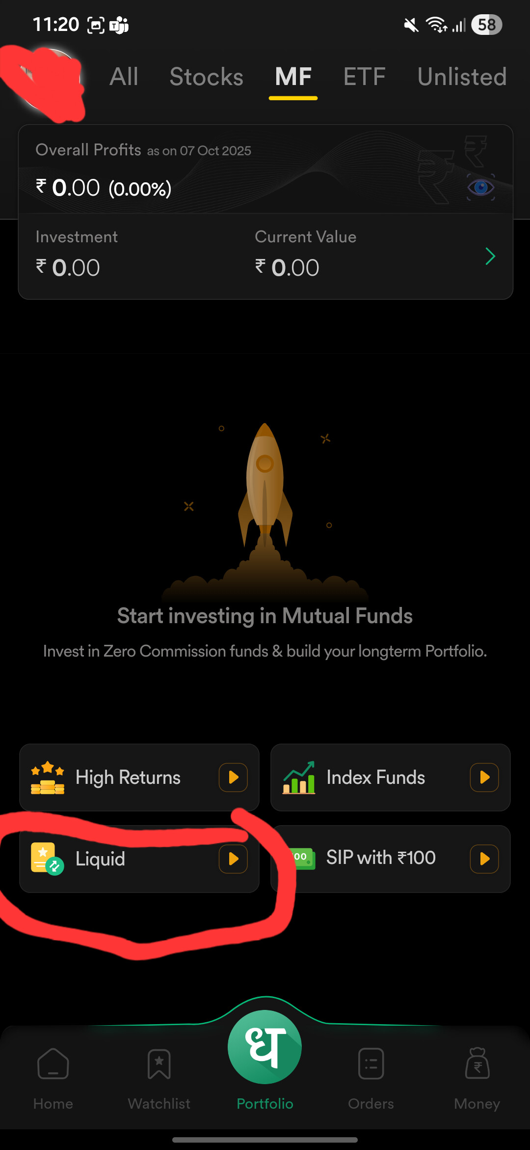 On dhan mobile app, when you go to mutual funds section and click on Liquid,nothing happens. Please look it.