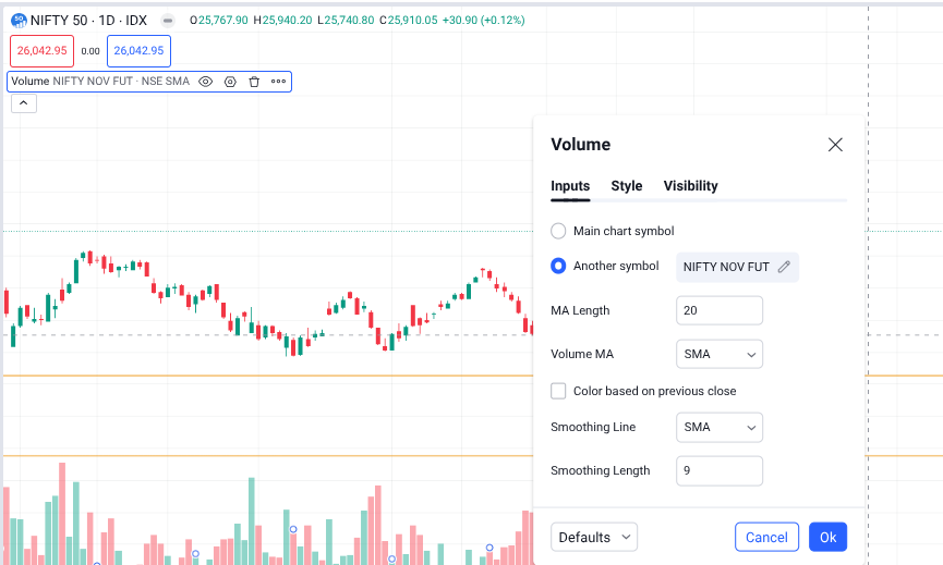 @Mohseen_Usmani Please make a note of adding “Another Symbol“ for other volume based indicators eg:- VWAP.