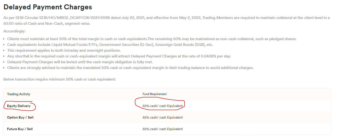 Though as per the link shared, the condition for 50% margin in cash is being met in my case, so not sure why interest will be charged or why holdings will be sold? And moreover, why such conditions apply for delivery trades and not for FnO?