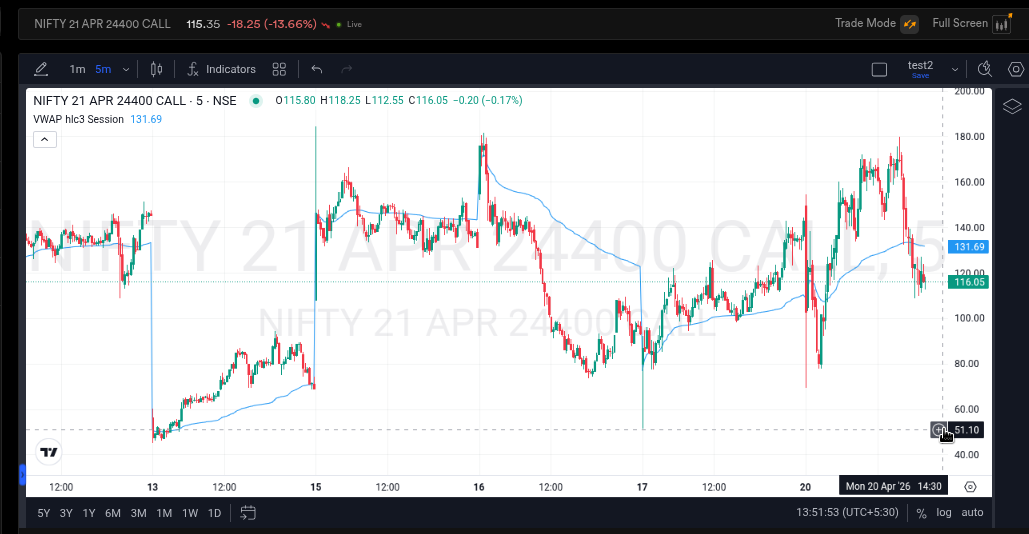 hi Wonderful people…m not able to put vwap on options chart…Kindly help