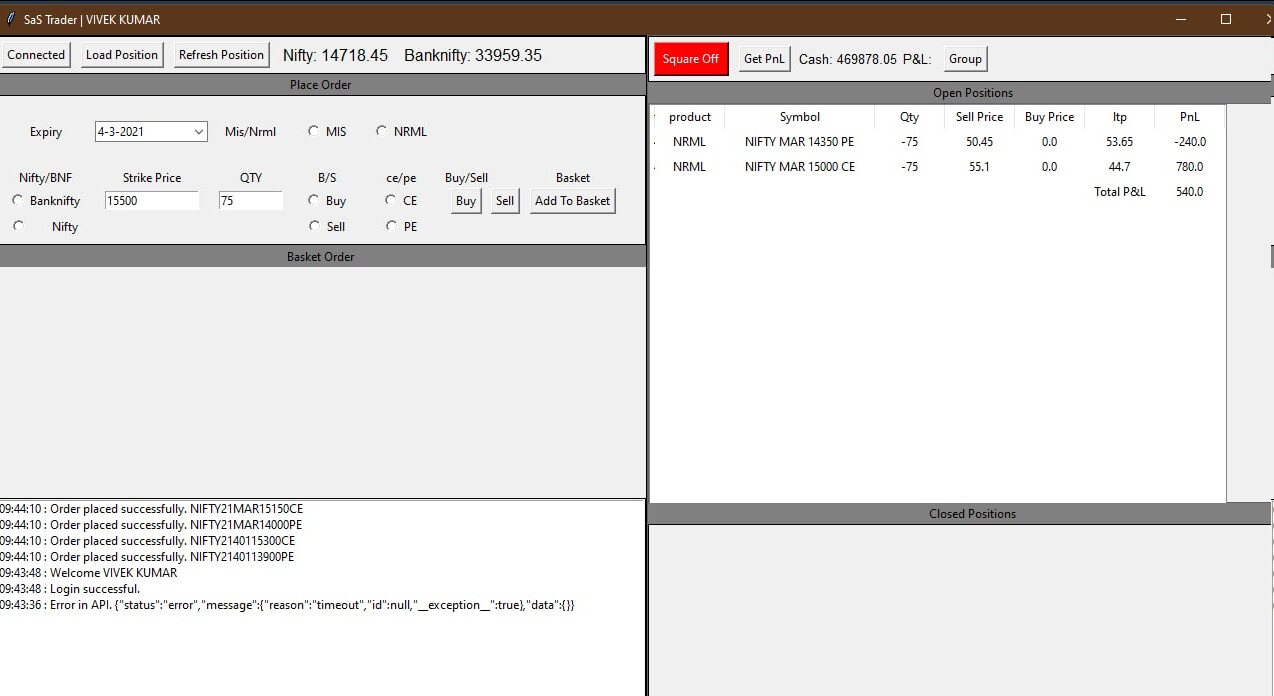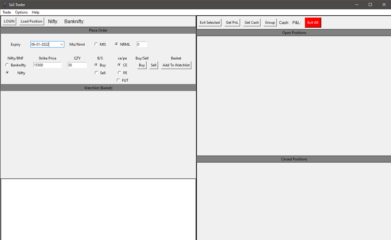 back in the days i used to use this tool made in python for some other brokerage. it was almost a full fledged options trading tool for me. it had everything. managing positions, watchlist, basket orders, grouping. also available margins, selective exits and entry for individual legs. with live prices of Nifty and BNF on top left portion etc.