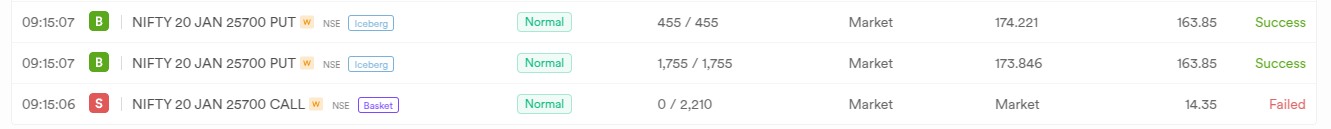 We will soon incorporate order slicing in basket orders.