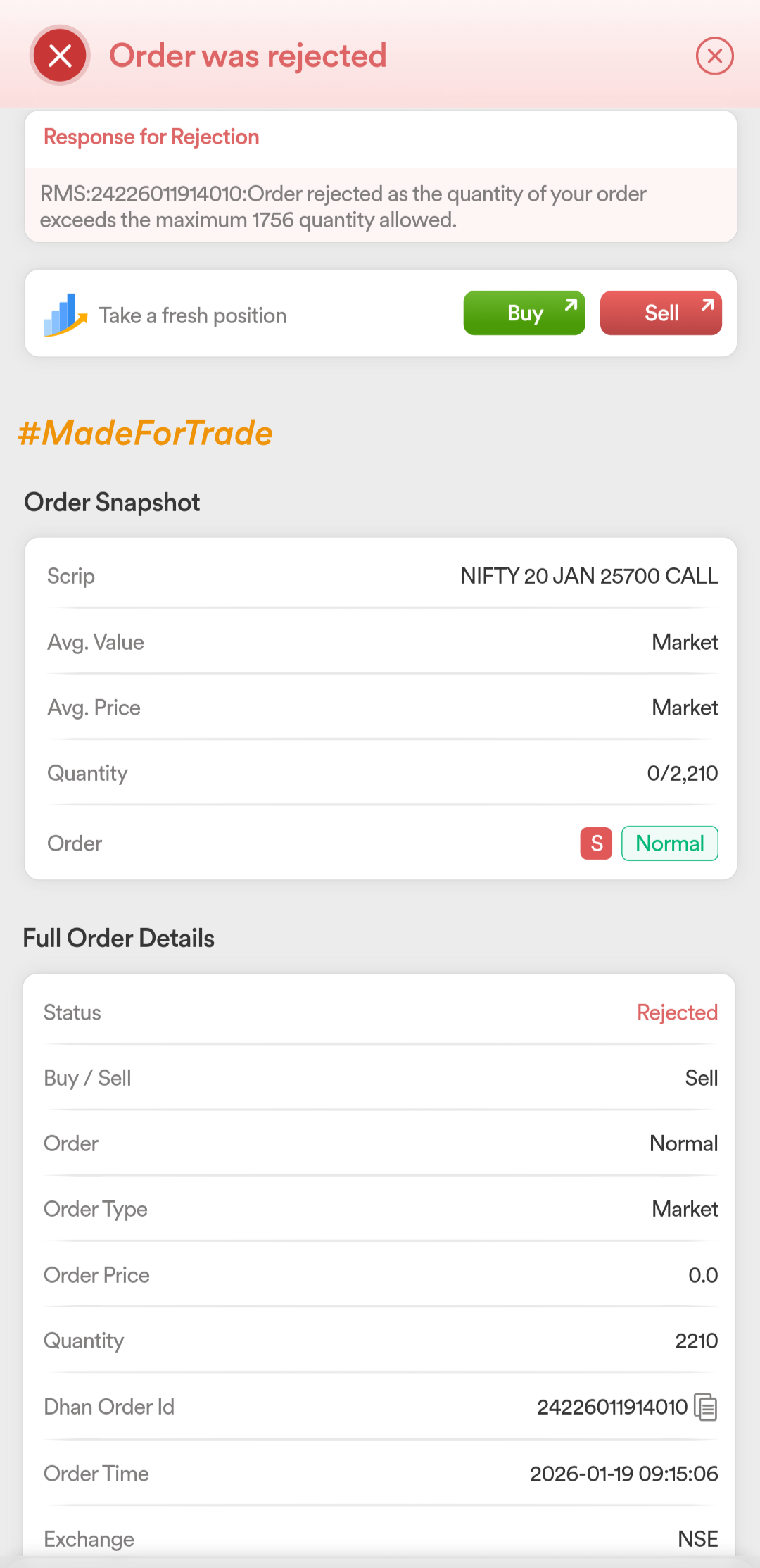 But surprisingly when I was trying same basket on web, it was showing error - order cannot be placed beyond freeze limit 1801