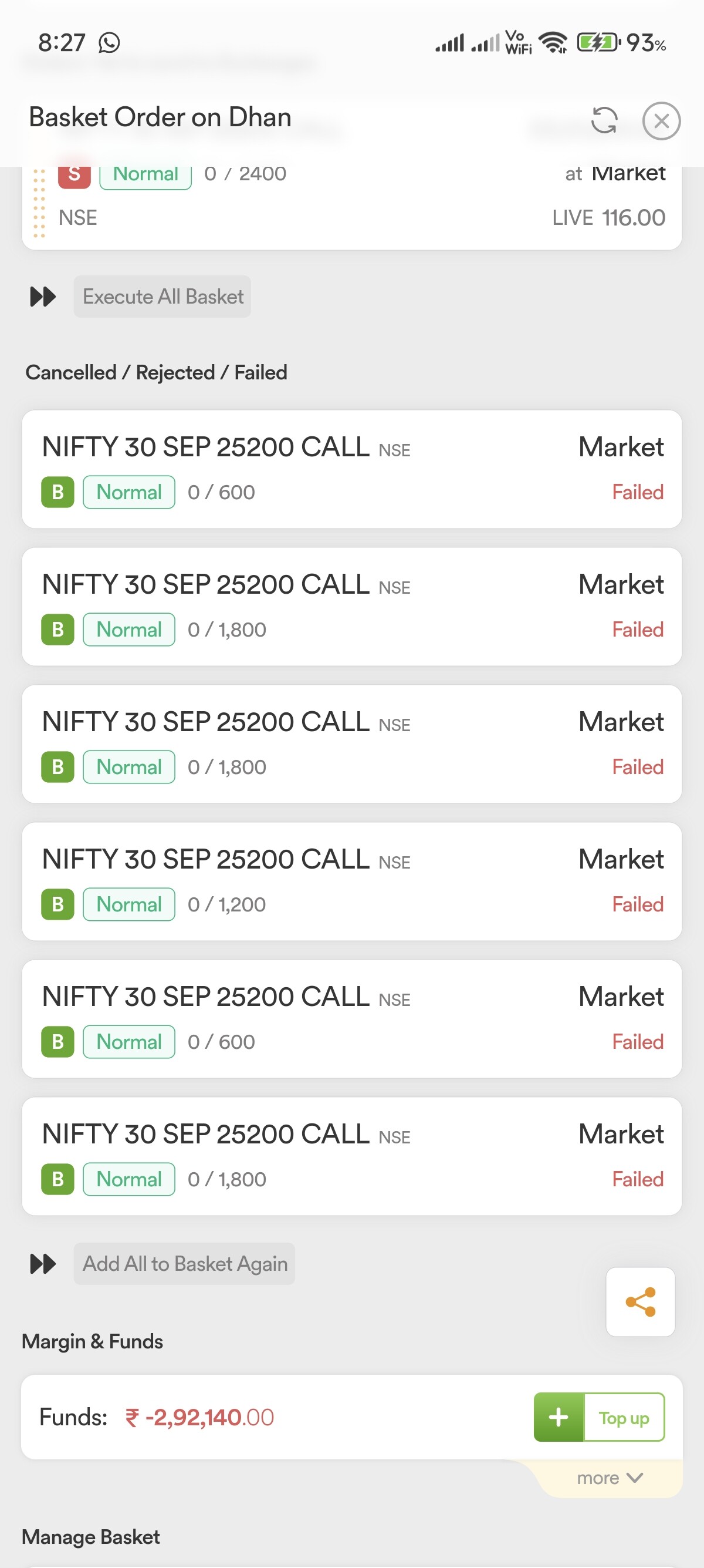 Try executing the basket in market hours from mobile app tomoro.