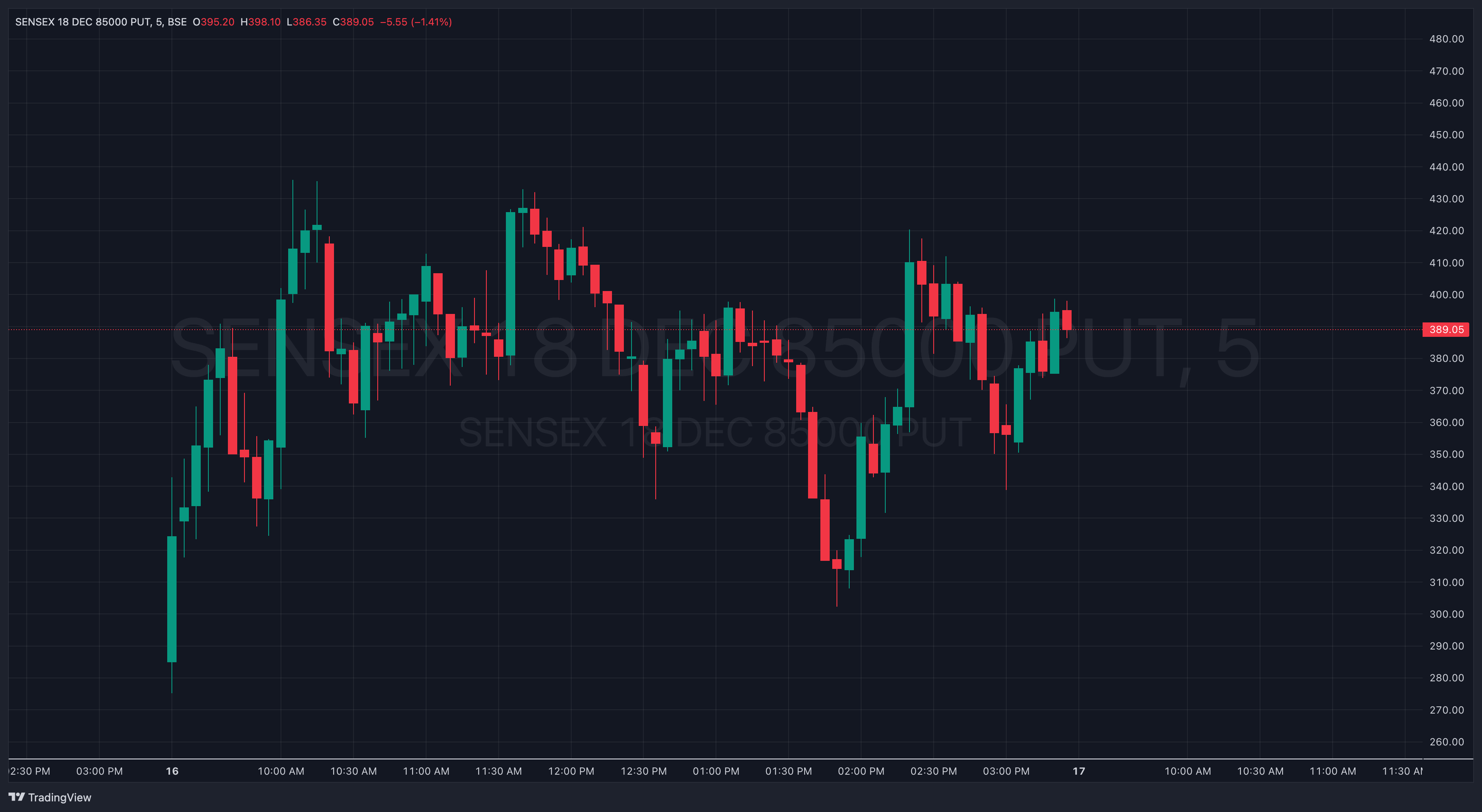 The issue was observed for Sensex 85000, 18 Dec 2025 expiry, on the 5-minute timeframe.
