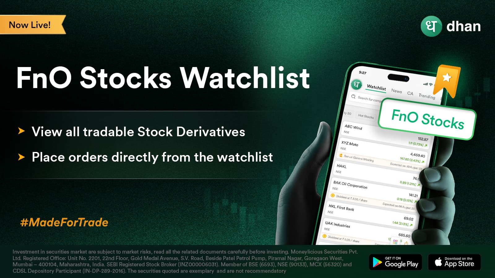 To check this new feature out, go to Dhan > Watchlist tab > FnO Stocks. We’d love to hear your thoughts. Have feedback or suggestions? Do let us know.