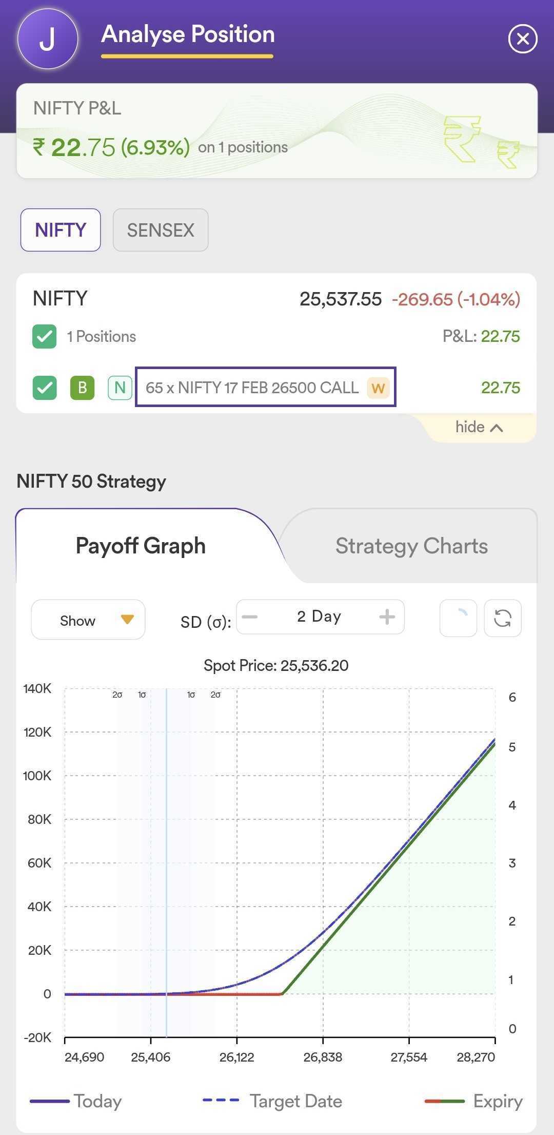 executed F&O strategies using real-time data through an interactive pay-off graph. This