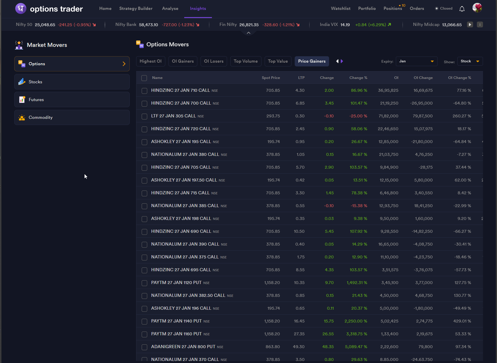 We have consistently worked towards giving traders the tools to understand price action, volatility, market shifts as they happen and thatâs why we bring real-time market analysis features such as Advanced Option Chain, Live Market Scanner, Multistrike OI Graph, Market Movers, Straddle Chain and much more ensuring you receive the right information at the right moment.
