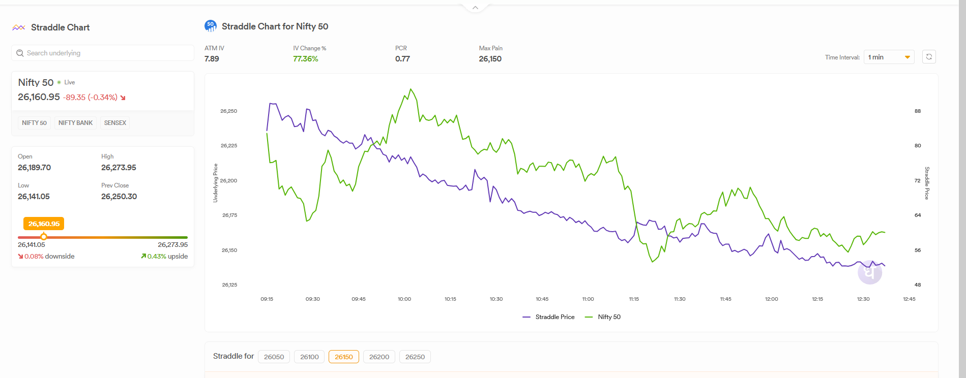 Multiple Timeframes: You can analyse straddle dynamics across 1-minute, 3-minute, 5-minute, 15-minute or 30-minute intervals for precise analysis.