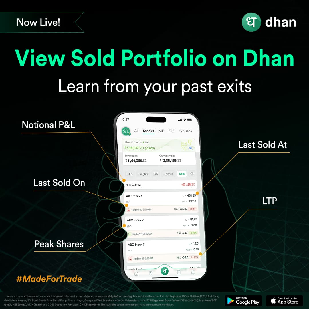 At Dhan, we’ve always believed that one becomes better with Investing or Trading by lessons the markets teach us. Every decision in the market has a lesson that one can learn from. Every decision, whether it’s a strong buy or a well-timed exit, carries valuable insights. And to help our users grow with such decisions, we’re excited to introduce a new and very innovative feature: Exit or Sold Portfolio.