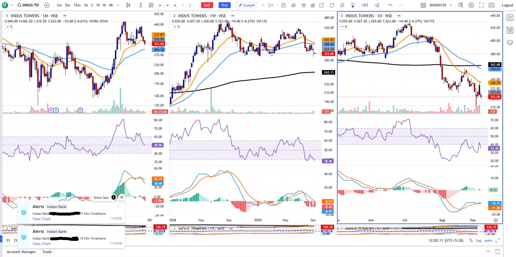 I have applied these indicators from the “Indicators” Tab on tv dot dhan. I can see the alerts in the object tree, but unable to apply the alert.