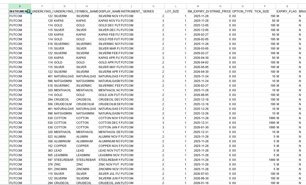 Over here, in case of commodity, while placing the order, the quantity needs to be 1 itself (which is given as the lot size on the security ID list). Also, for tick size, it needs to be divided by 100 across instruments (you can find the same true for equity as well)