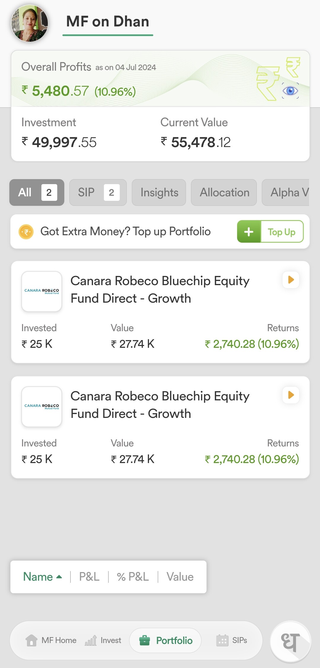 - Invested into 1 MF total 5 EMI done