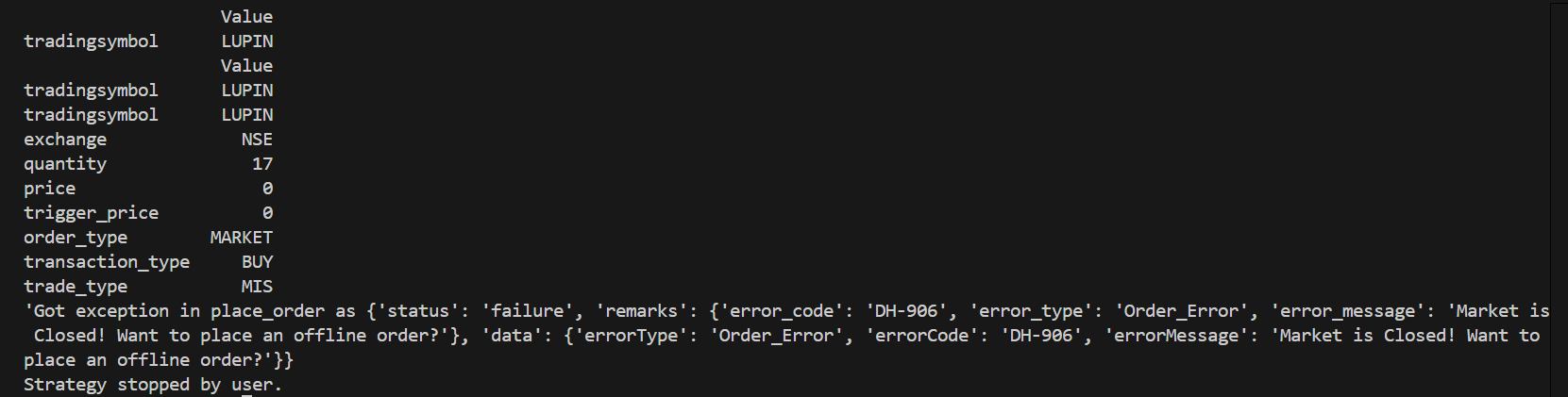 print(f"Placed BUY Cover Order for {stock_symbol} | Qty: {quantity} | SL: {stop_loss_price:.2f}")