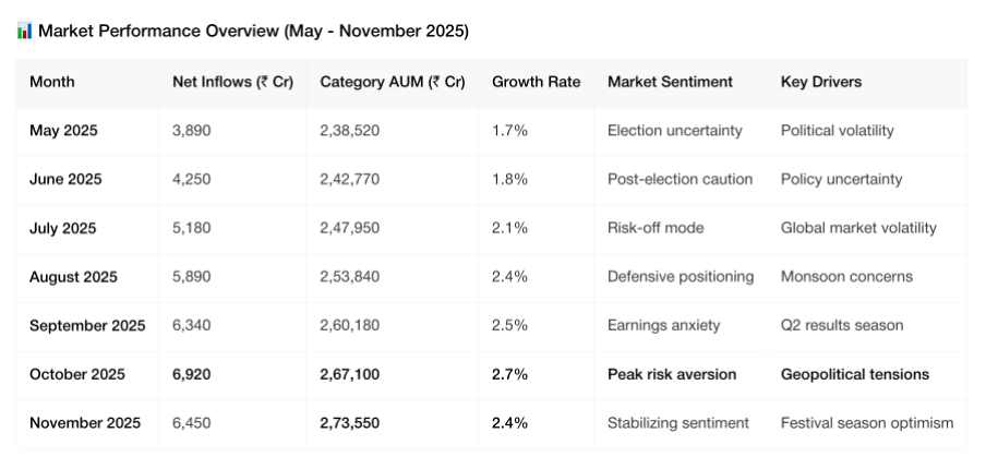 - Category AUM up ₹35,000 Cr - massive demand spike