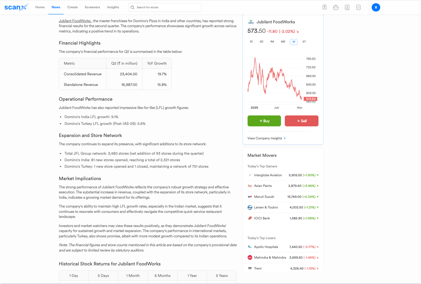 Double-digit same-store sales growth with higher gross margins. Introduced 7 new products in the Flavor Burst range and expanded its footprint in Mumbai.