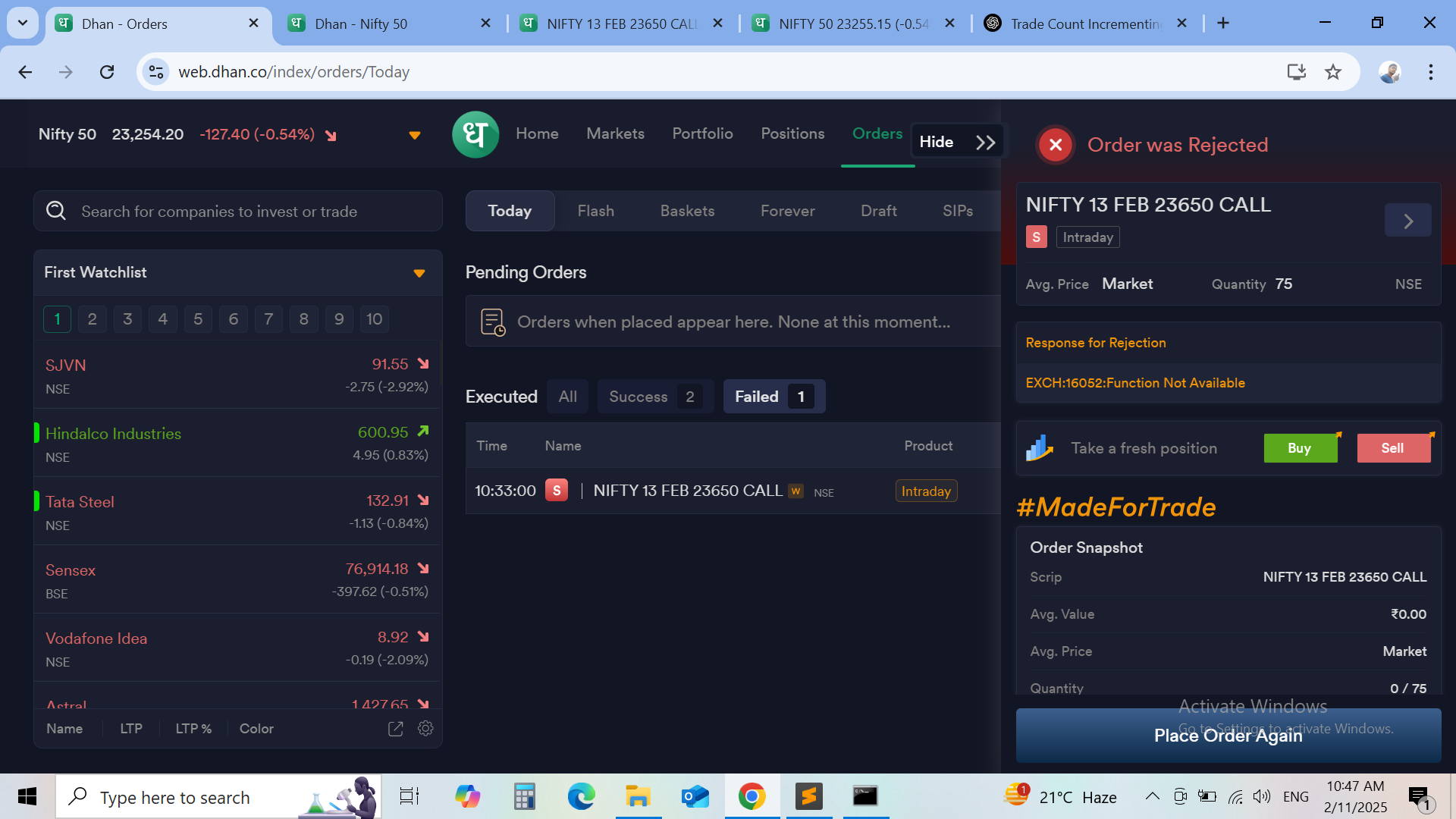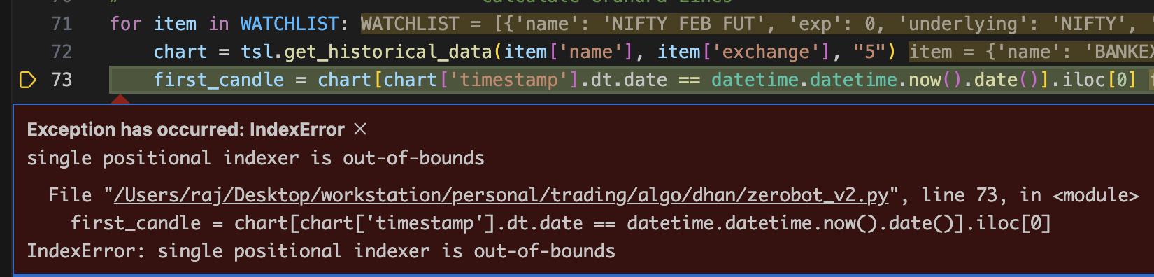Please try to run it in market hour and share the output with us