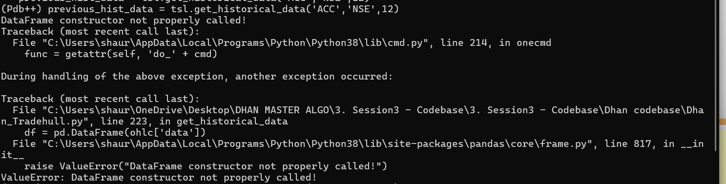 Kindly help with this, it says Value Error, - DataFrame constructor not properly called.
