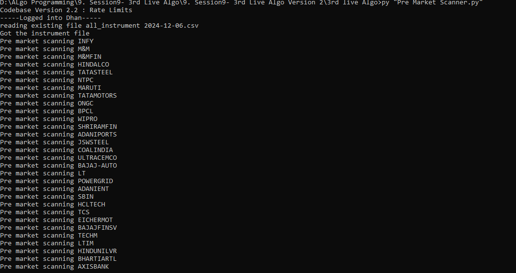 C:py "Pre Market Scanner.py"Lecture Sessions\Forum Support\Forum Code Questions\32. Priyesh\3rd live Algo1\3rd live Algo1>py pr
