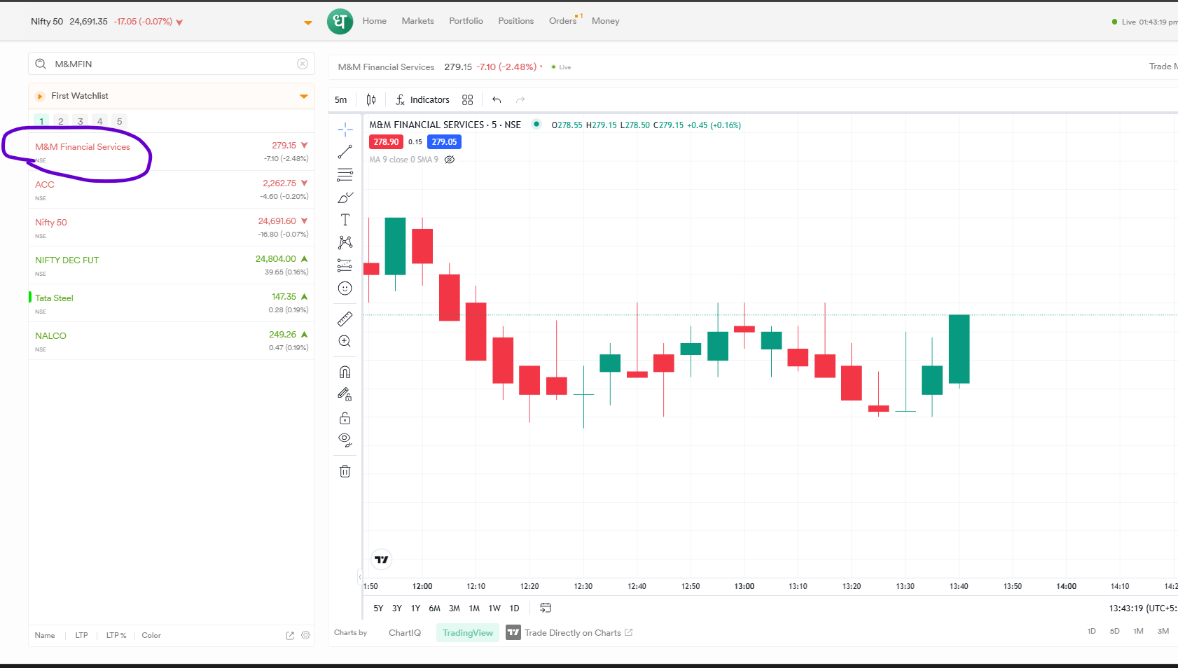 chart = tsl.get_historical_data(tradingsymbol = 'M&M Financial Services',exchange = 'NSE',timeframe="5")
