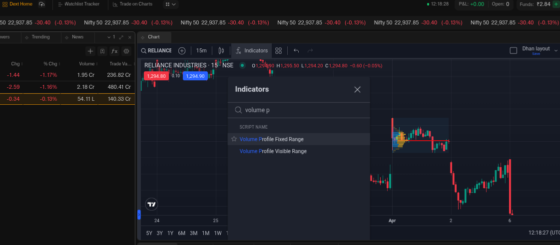 Could you please confirm if the Session Volume Profile (SVP) or Session Volume Profile HD is available in the indicators list on tv.dhan.co dext? If not, I request you to add this standard TradingView feature to help intraday traders