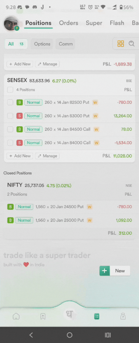 I want to draw your attention to really important matter for we end users. In both the Mobile Apps be it Option Trader or Dhan , In both Apps if we go to Position’s page & from there if we are managing our position for exit or sometimes wanna Add more quantity quickly.