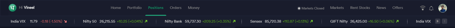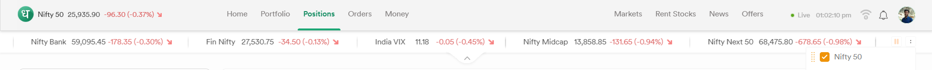- I also agree with @specter that left-most Hi Greeting is looking odd. I think you can keep Nifty 50 index pinned by default and if any user pins any other index…it will just replace it and save it.