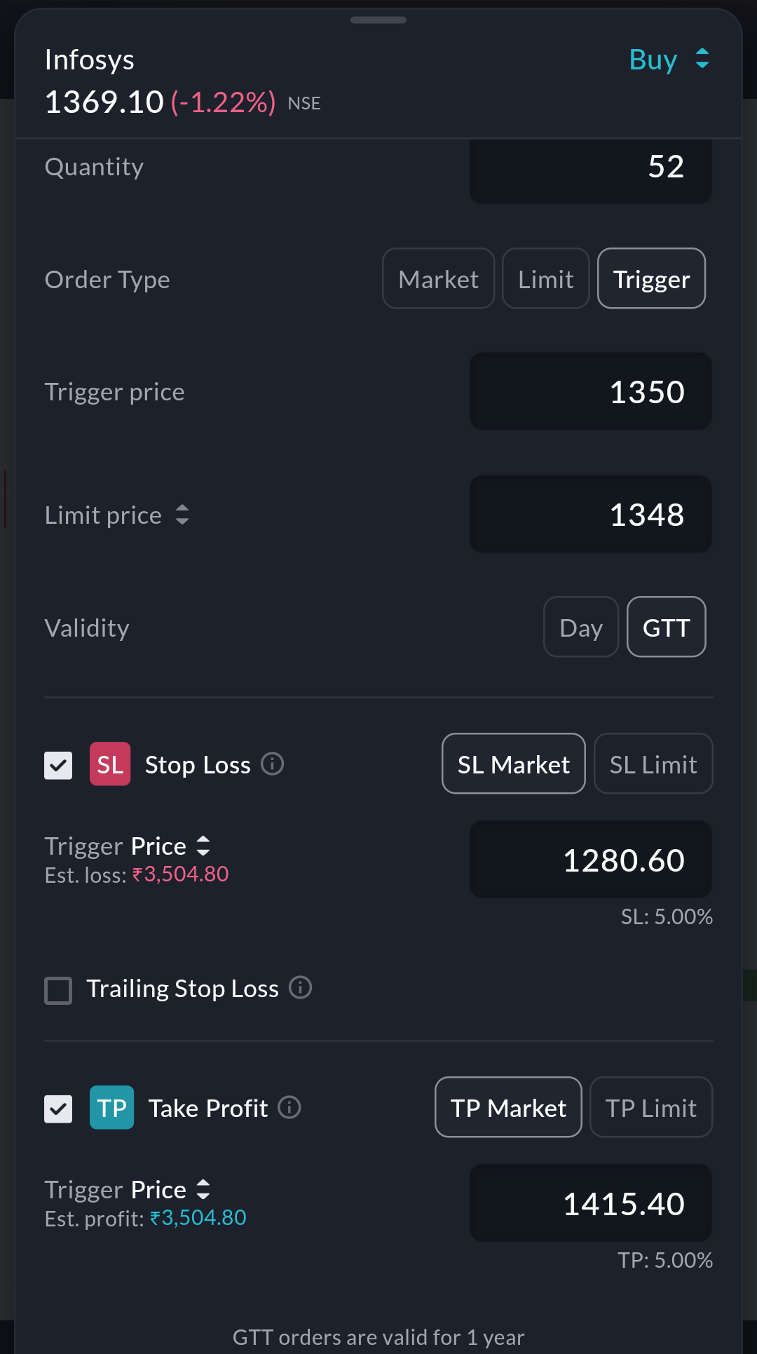 Sahi avi new hai but isne bahut acha feature diya hai,GTT order bhi iska sahi hai SET and forget, dhan ko kitne time se aisa FOREVER ORDER me SET option ka request kar rha hu but koi fayda nahi,