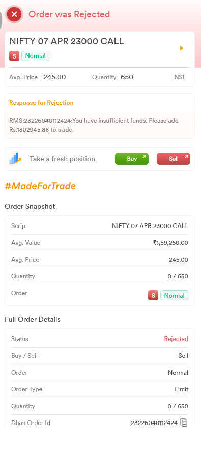 Let me know if you have any question. I might convert the my Pending order to MARKET from Dhan UI by EOD.