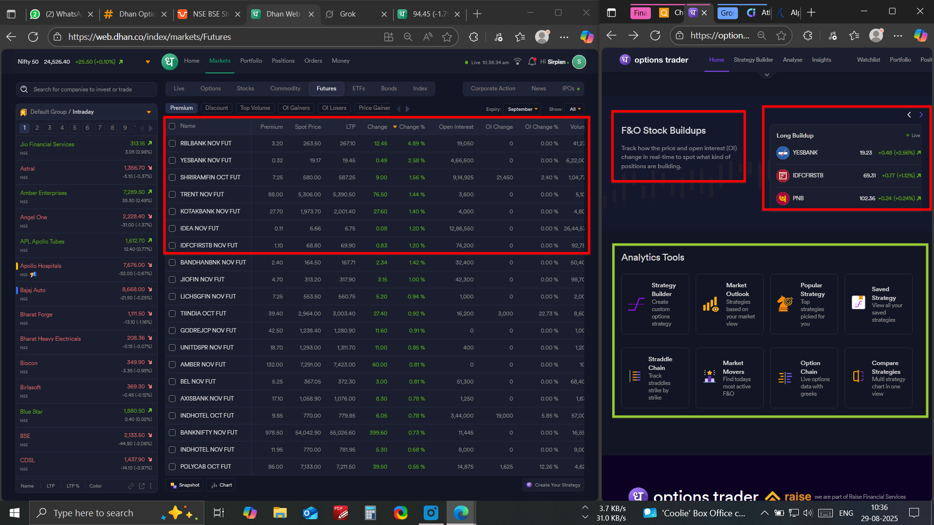**1) a) Observation: Derivative’s Data from Dhan web and Option Trader Web Seems to be Non in Sync: **