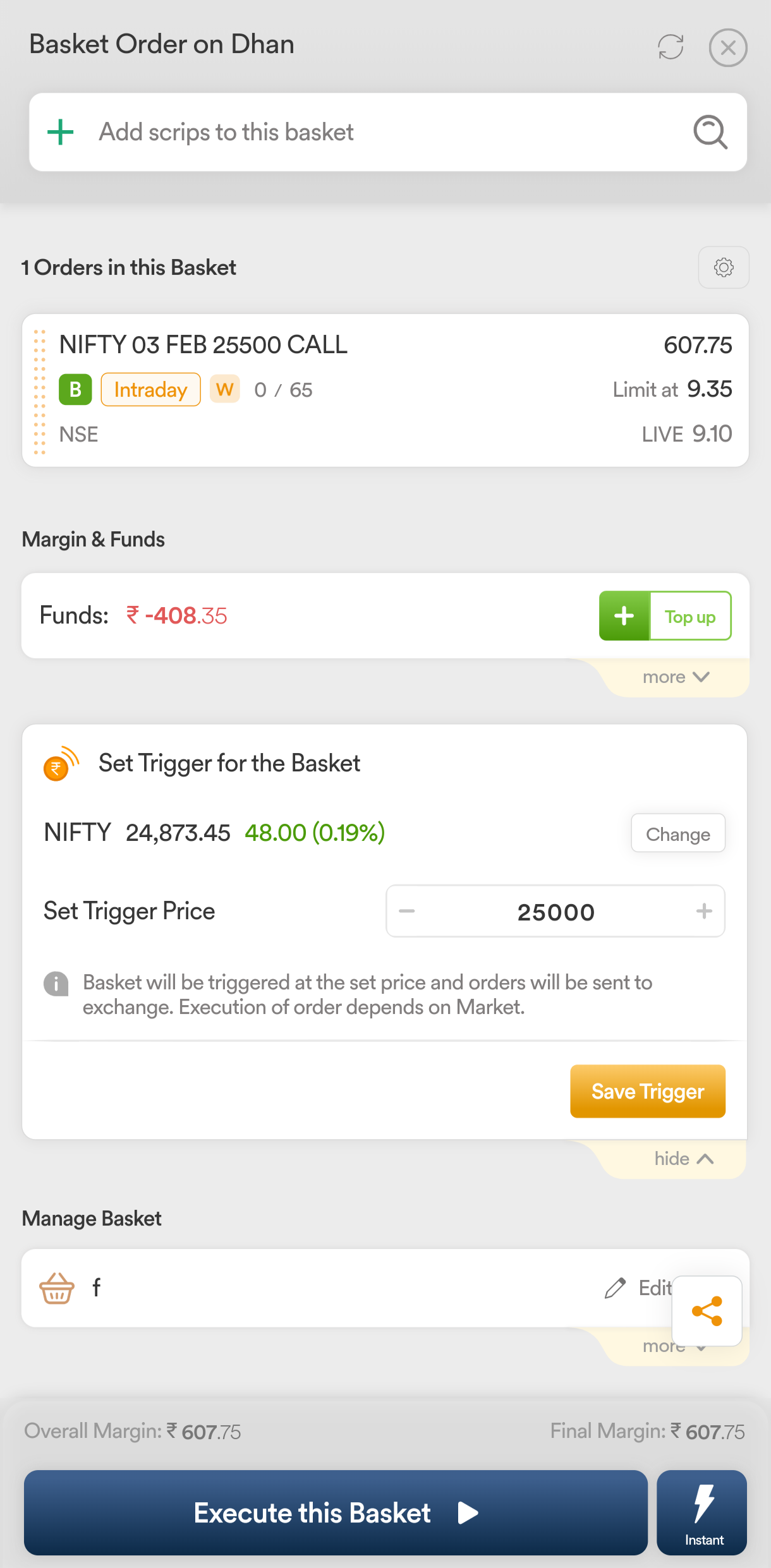 Sir, is there a tutorial video for this? I canβt find this option in the basket order. My call option should be automatically bought when the Nifty touches 24600.