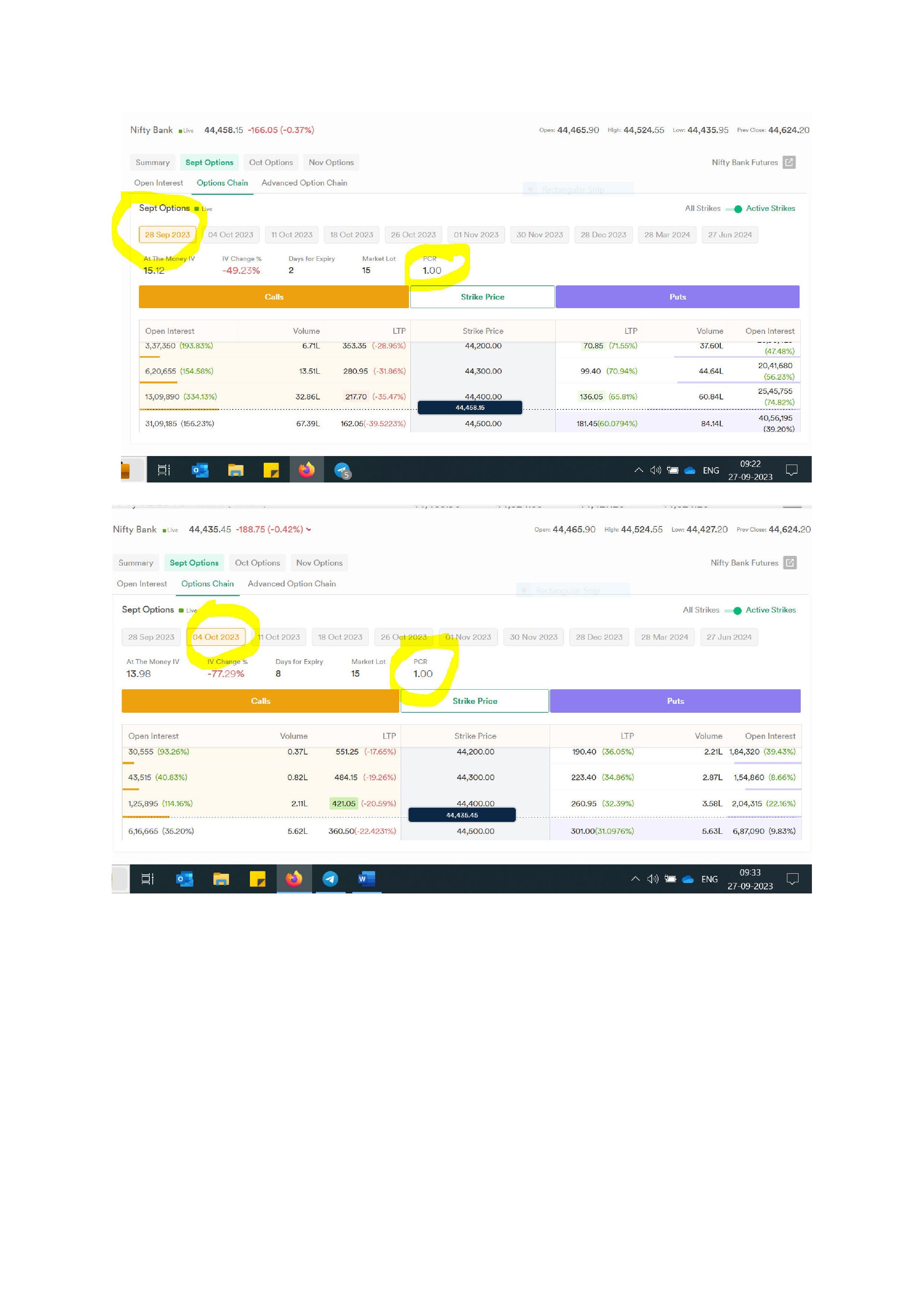 Issue still not resolved. For all index options, weekly and monthly expiry, PCR is stuck at 1 for last one week now. Please fix it.