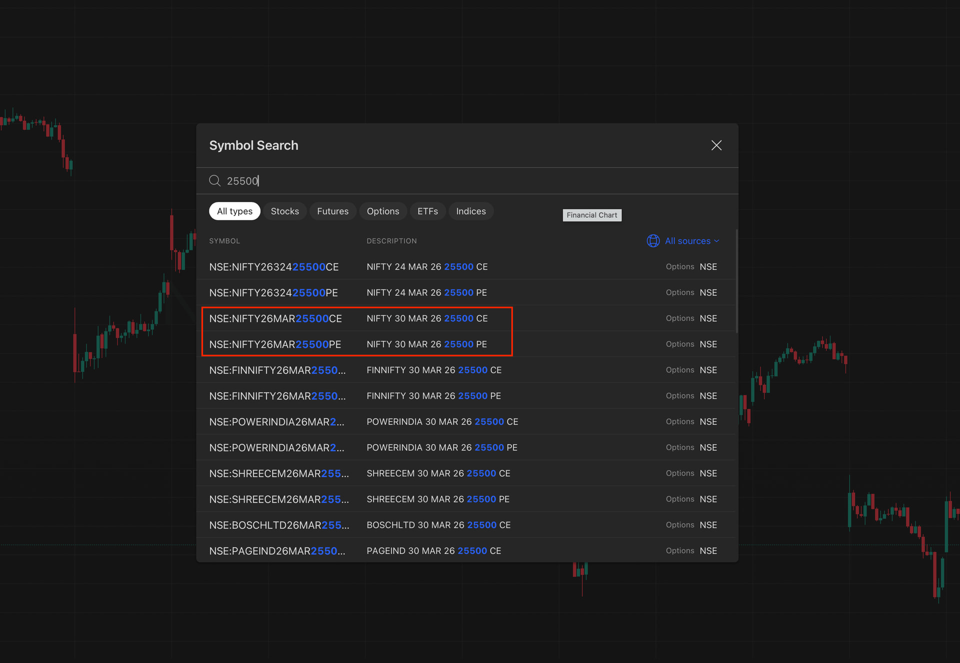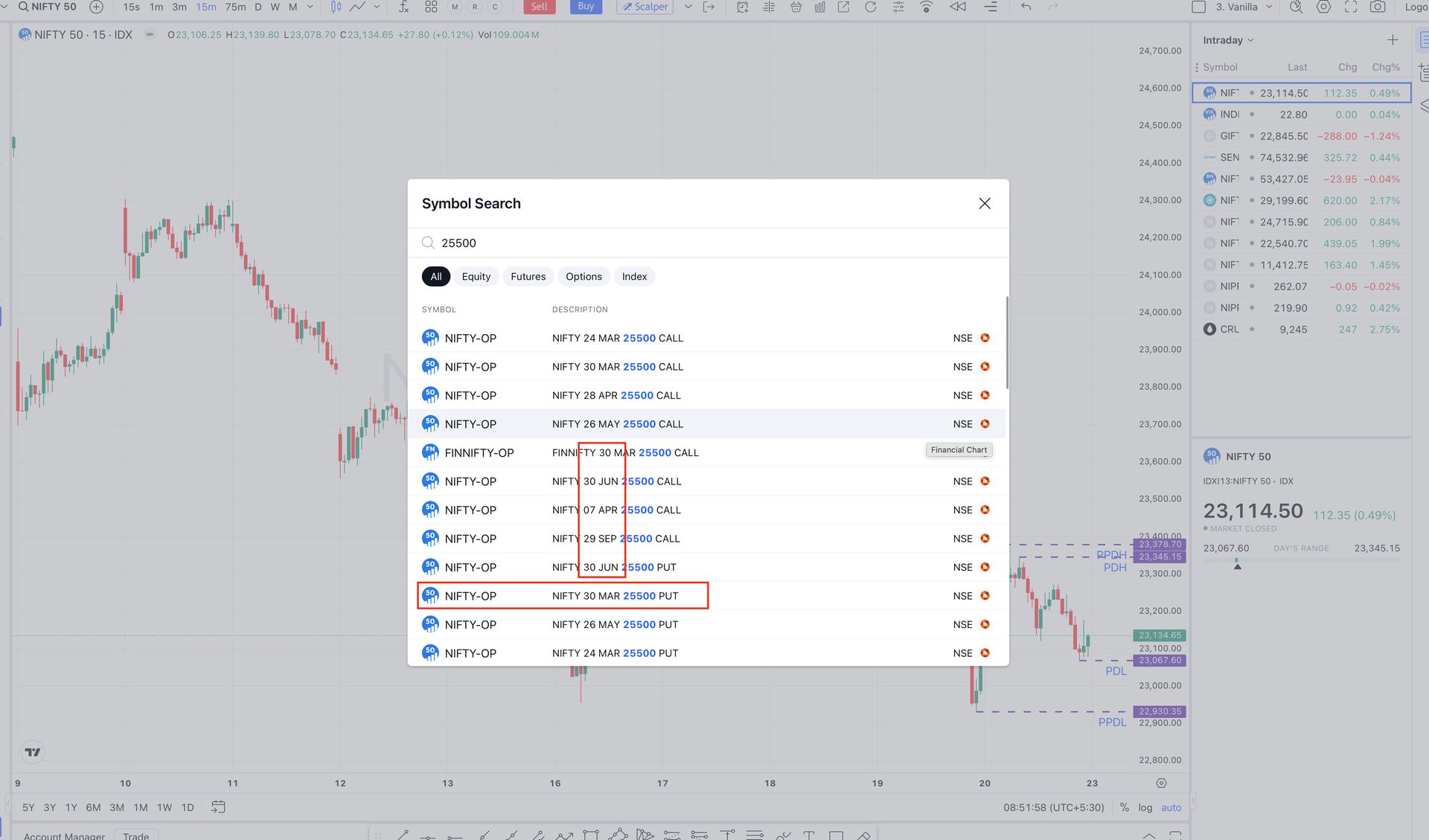 I was trying to search NIFTY 25500 PE 30 MAR expiry but it was not available in OC so I had no other choice but to use “Symbol Search”