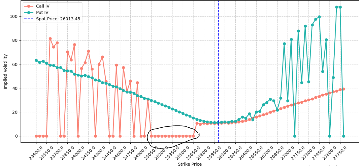 Yes, it was changed to these non-zero values towards the end of the session. Now the call side has similar issues please check the strikes <=25650. I have plotted the IVs for most of the active strikes in the attached figure.
