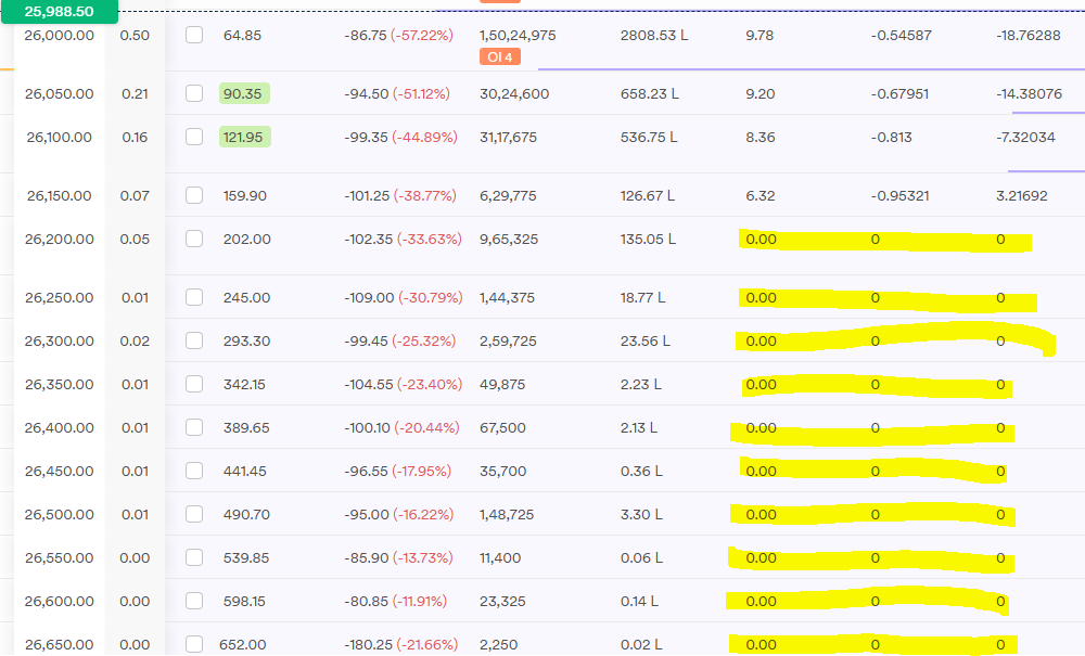 IV becomes 0 when the system is unable to calculate it using the Black Scholes model. This usually happens on expiry days when the option’s actual market price and its theoretical price are very different. Because of this mismatch, the system cannot find a valid IV for that strike.