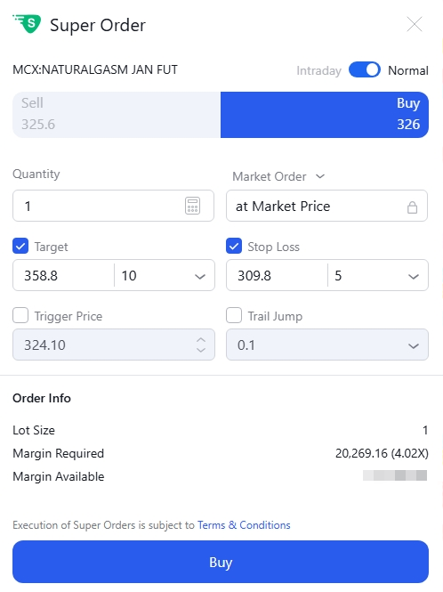 Effectively, this lot size in super order window is just quantity. As we increase the quantity, it also gets increased.