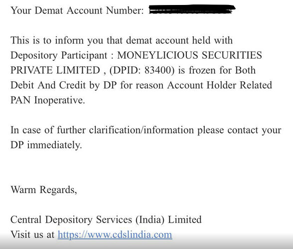 Received an email from CDSL that account is frozen for Debit/Credit, What is it? why account is frozen?