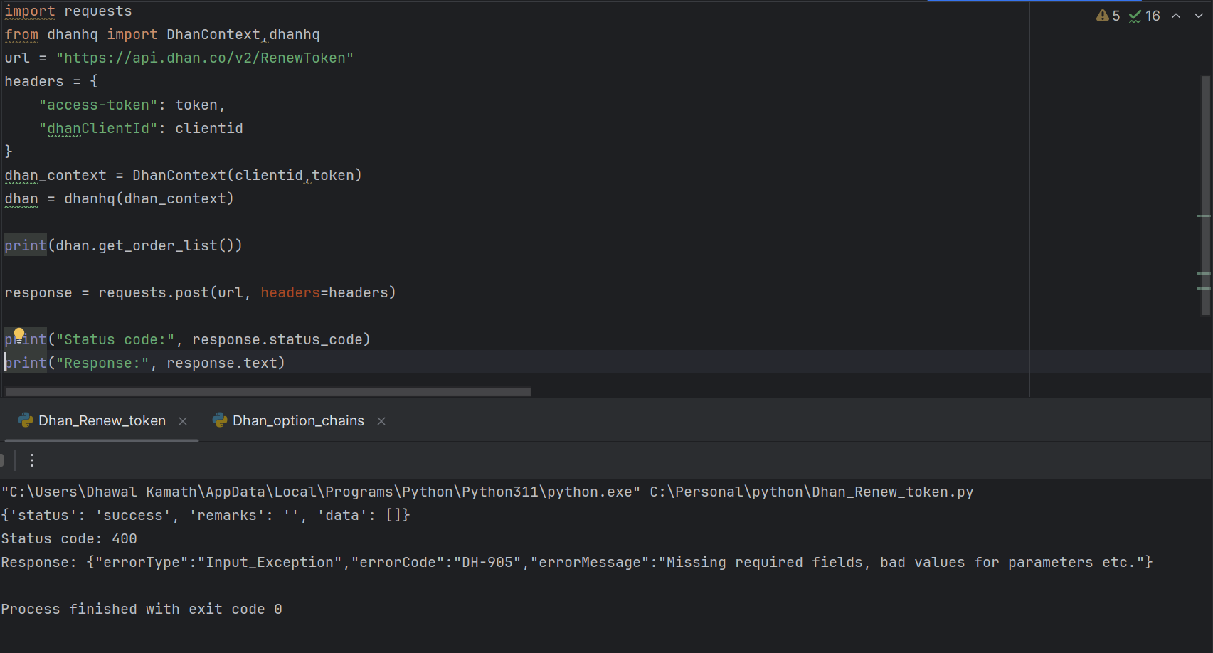 As you can see in the image, the token is active and returns the order list with status as success but the renewtoken when used as mentioned in your api docs, it gives the missing required field issue