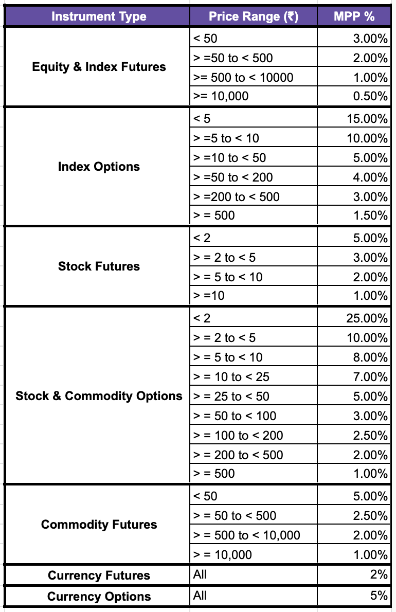 What is the default percentage of market protection (MPP) applied across different instruments (attached snap is of Upstox reference for you)