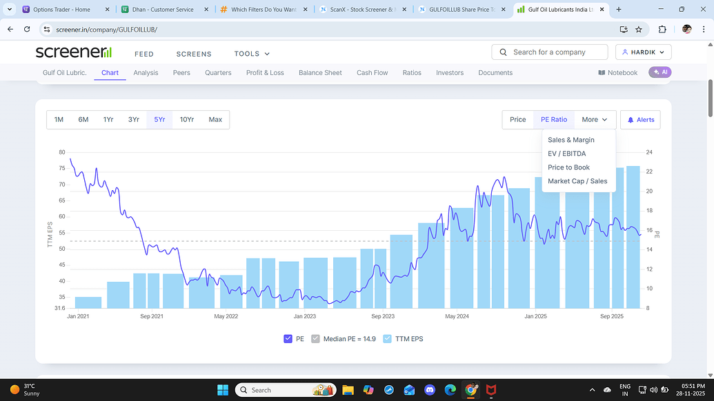 on this part Even apart from this need PE ratio Chart in the same flow of the fundamental data for ur reference chk the below 2 image one of ur Scanx & other one of Screener.in Similar way this also Query if u can resolved it