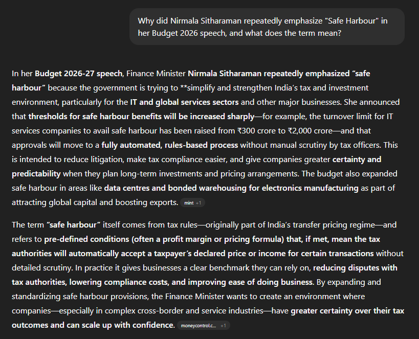 "Safe Harbour", signaling predictability and trust in India’s tax system